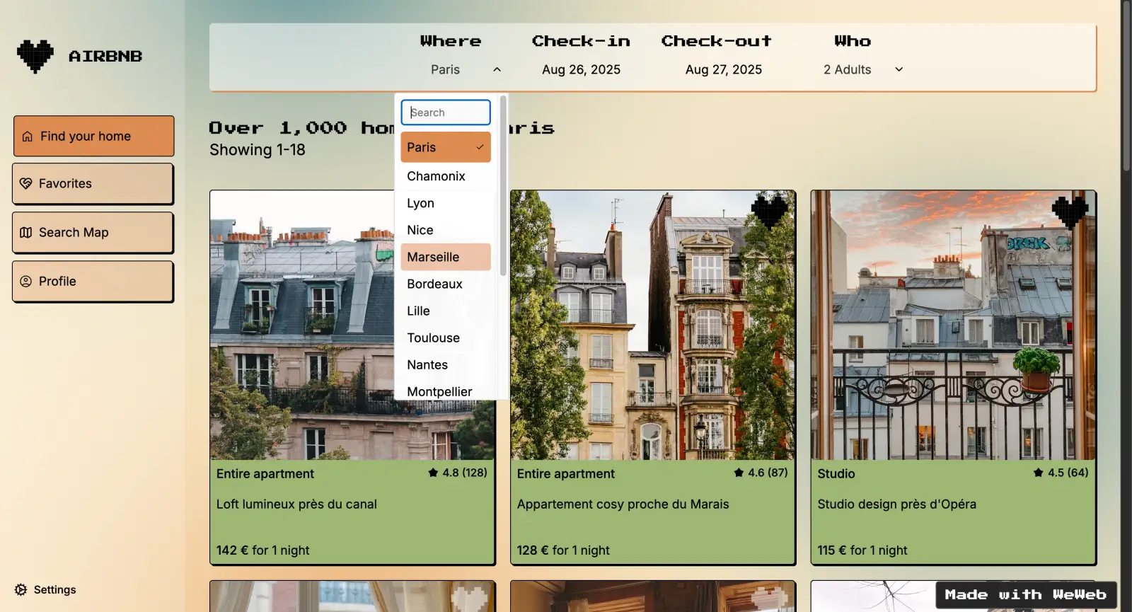 WeWeb UI Challenge – Clone Airbnb (avec un twist)